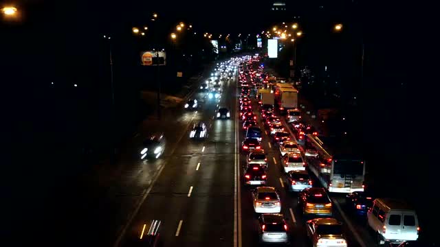 Low-angle, slow-motion shot panning to follow an arriving plane as it flies directly overhead. It continues towards the runway, flying over a road full of cars. Filmed at LAX in Los Angeles, California, in June 2012.