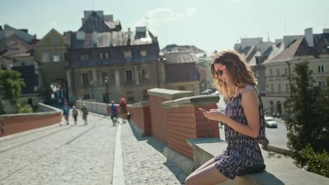 A young man using a mobile and sitting outdoors. Closeup shot. Soft focus.