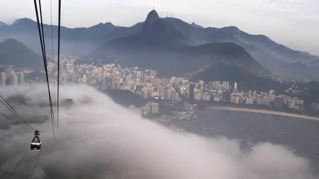 101605 - Gondola ride down the mountain on a misty day in Rio de Janeiro, Brazil