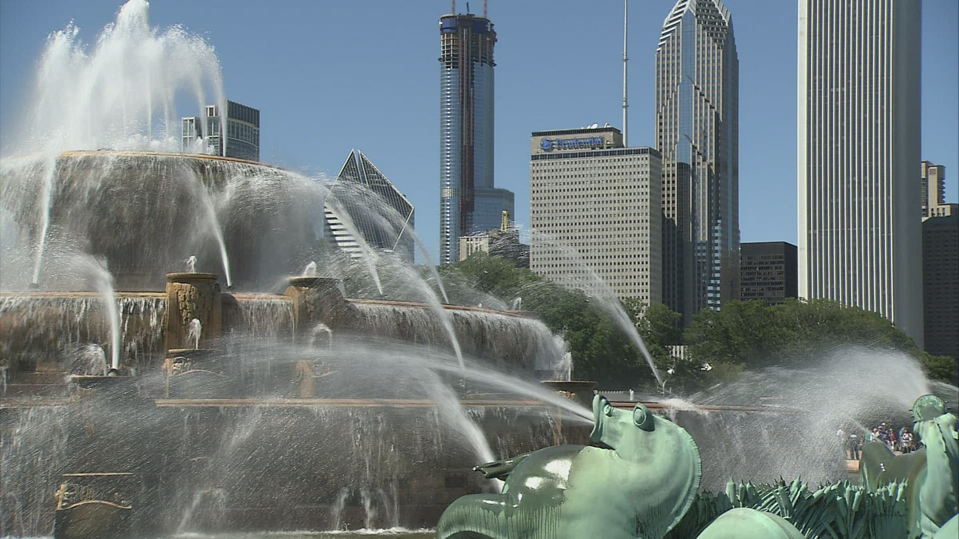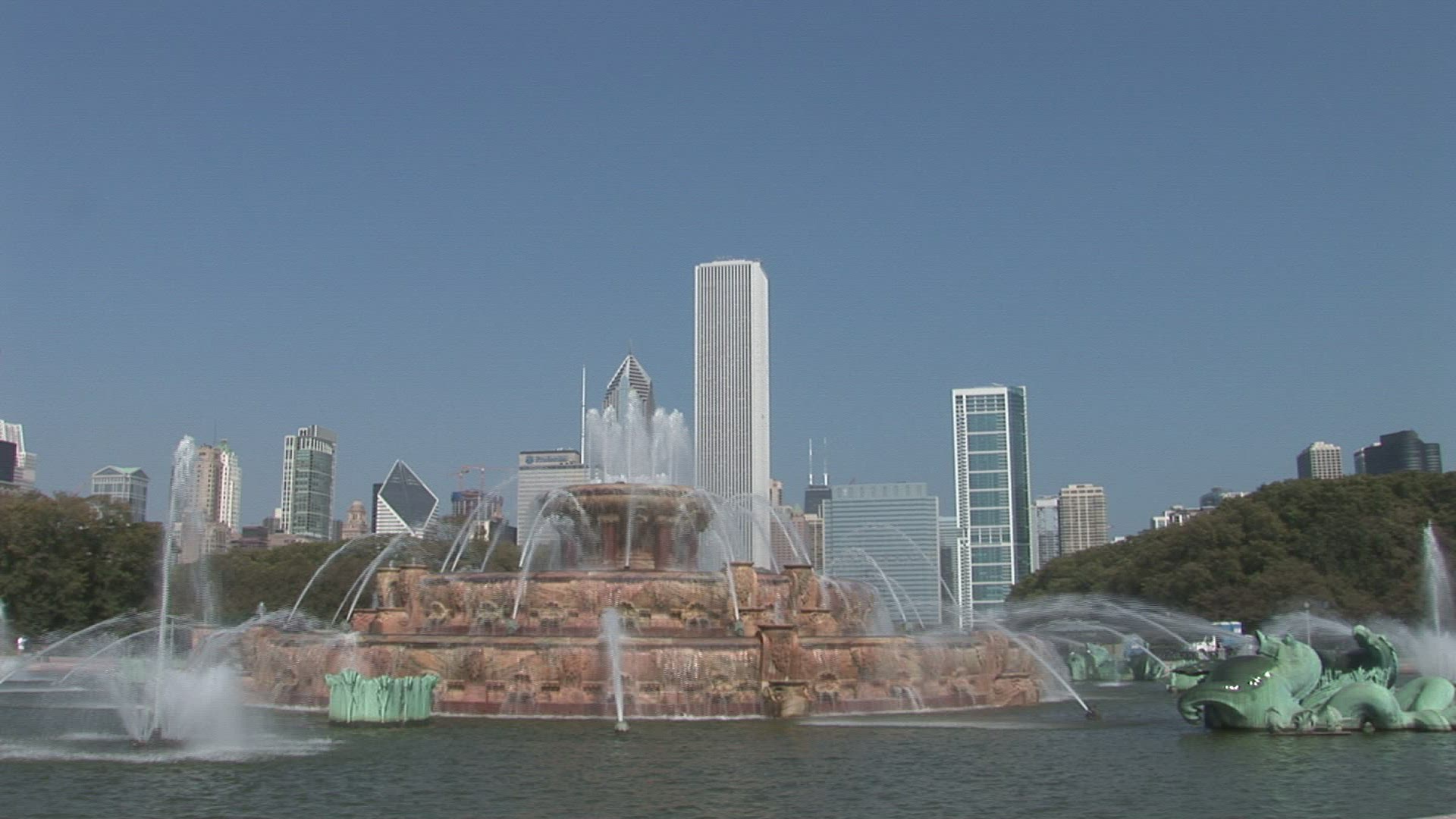 > Chicago downtown skyline from the Buckingham Fountain view