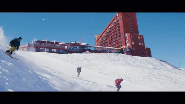 427866 - Time lapse of clouds over snow covered alpine mountain range with ski lifts