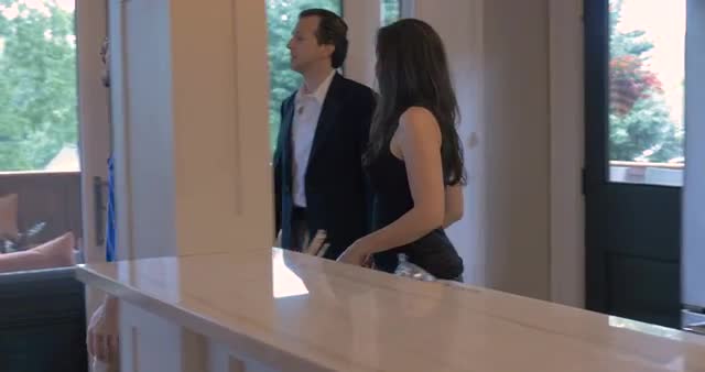 > Real estate agent showing a young man and woman couple a modern home