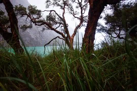 924634 - Moving forward as snow in trees blow in the wind