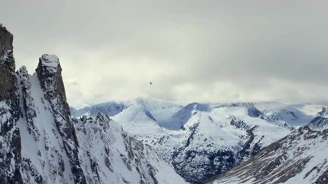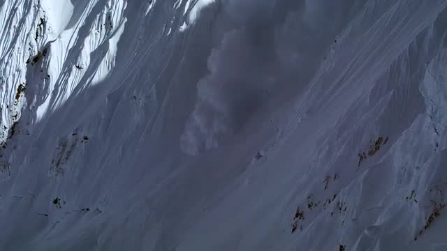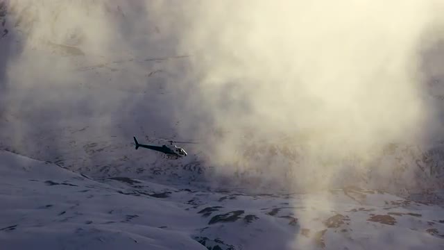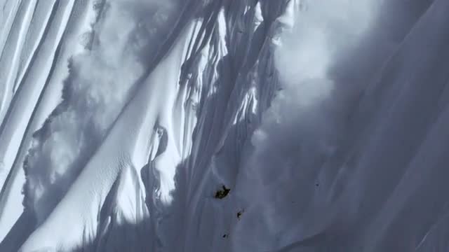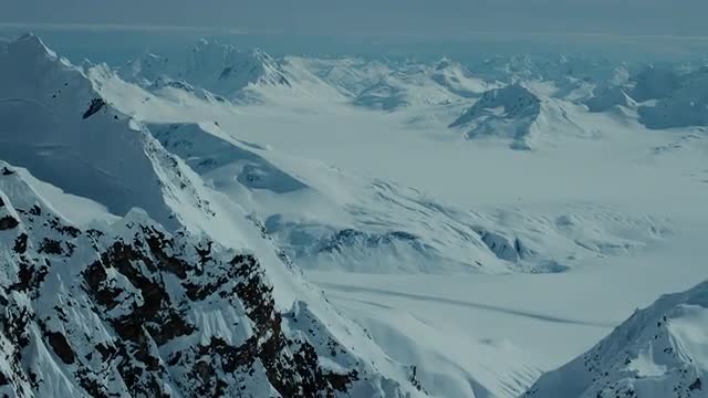 Snowboarder in the backcountry of Alaska drops into mountain crack full of deep powder