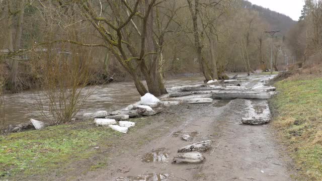 925429 - Big chunks of ice washed up on road