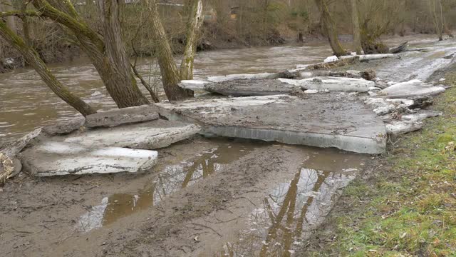 > Big chunks of ice washed up on road