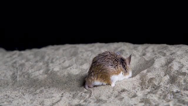> Mouse digs hole in sand, 4k