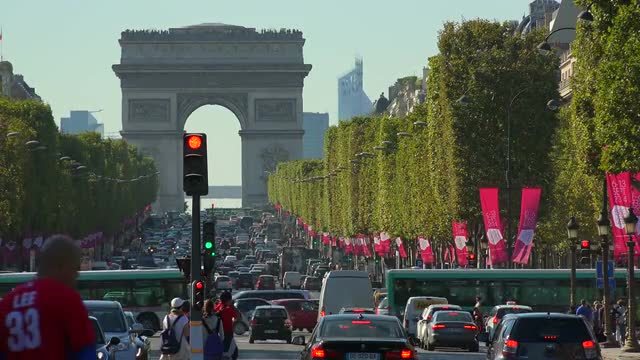 > Day to night time lapse of traffic at the Arc de Triomphe