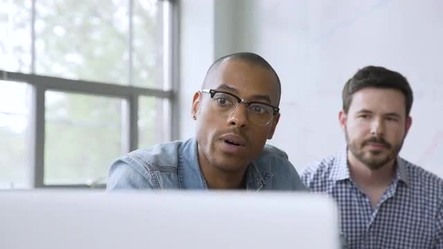 > Business people video chatting in startup office