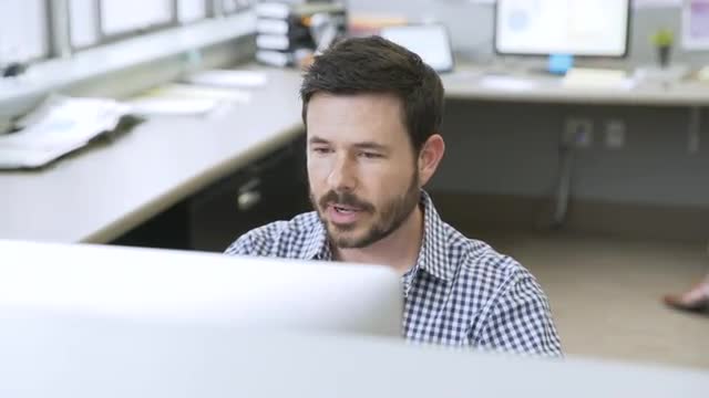 > Businessman video chatting in startup office