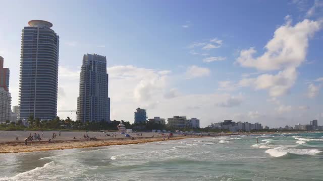 752230 - summer day ocean waves miami south beach panorama 4k usa