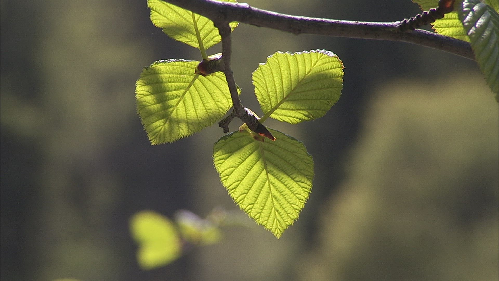 Birch branches swinging in the wind. Summer sunny day. Green and blue colors. And circle Bokeh