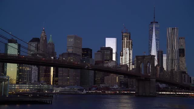 > View of Manhattan and Brooklyn Bridge early morning