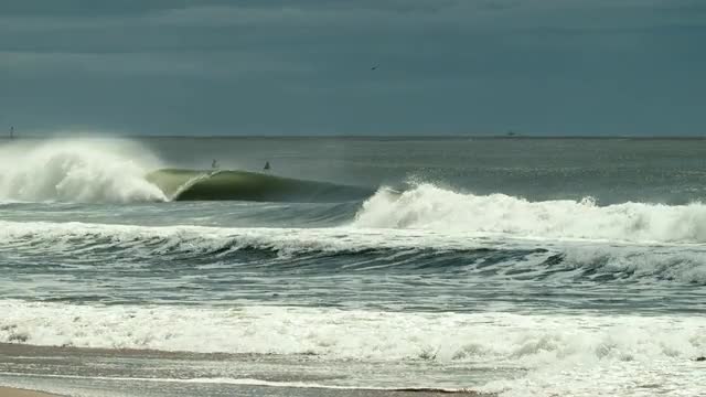 928169 - Perfect Wave On Beachbreak With Boat In Background