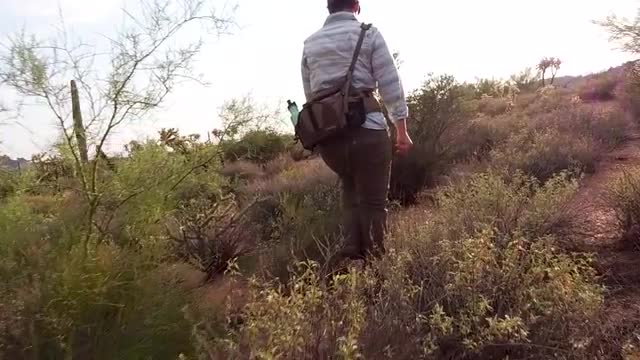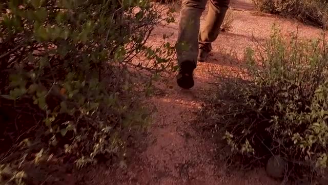 Person hiking around desert landscape, searching for scorpions