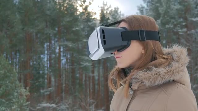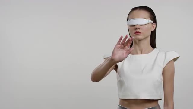 Future technology and internet concept, attractive woman working with virtual screen. Shot on RED CAMERAS