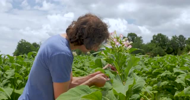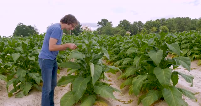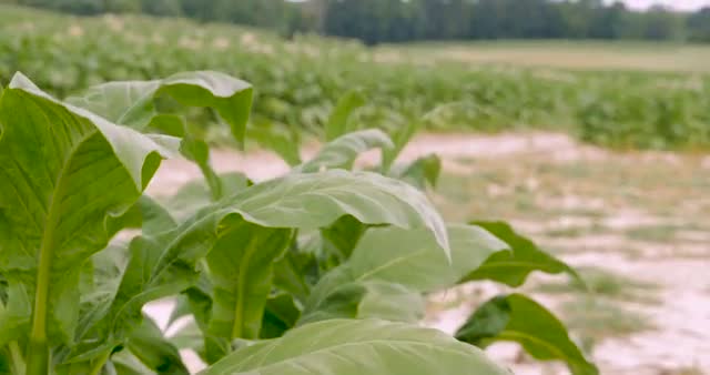 929680 - Tilt up of healthy tobacco plants in a field in the hills of Virginia