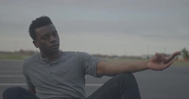 > Friends skating around an empty parking lot