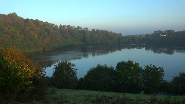 Moselle River near Bremm and Stuben Abbey ruin, Rhineland-Palatinate, Germany, Europe