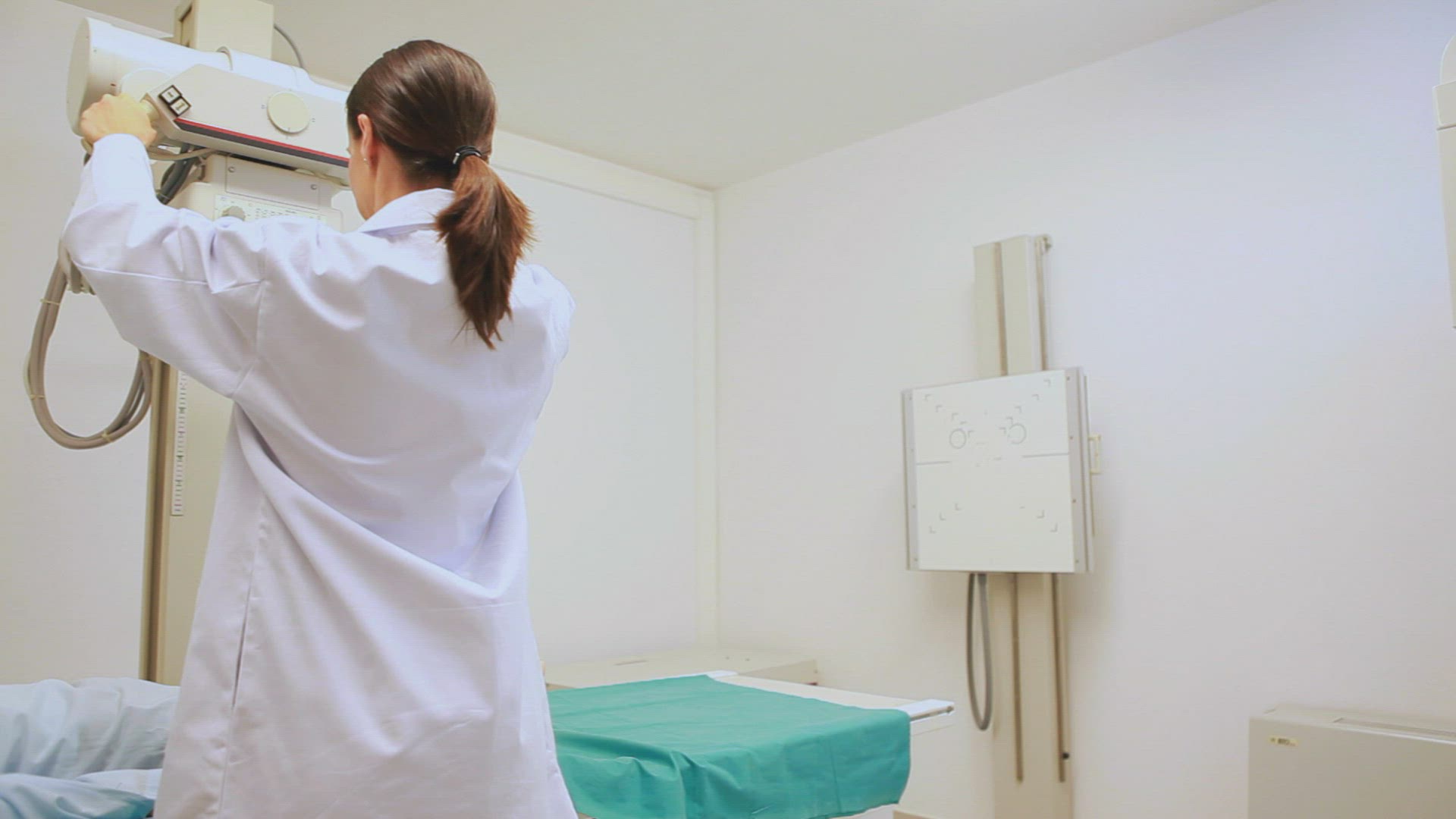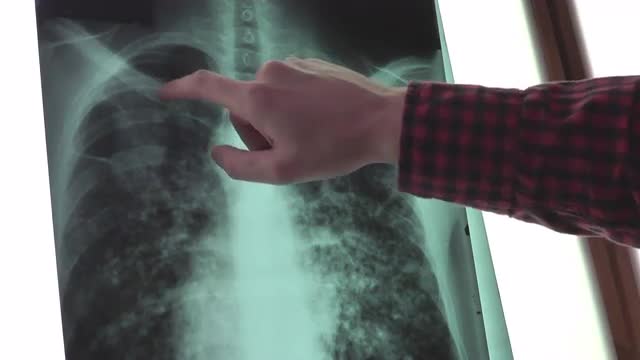 X-ray image of the dog on the monitor in a veterinary clinic.