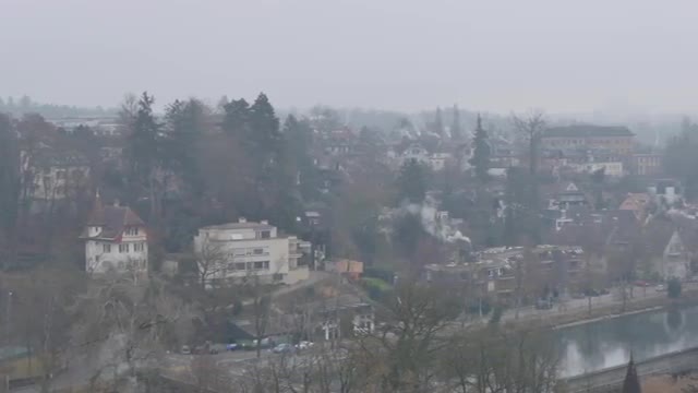 > Pan across the city of Bern and Aare River in Bern, Bernese Oberland, Canton of Bern, Switzerland, E