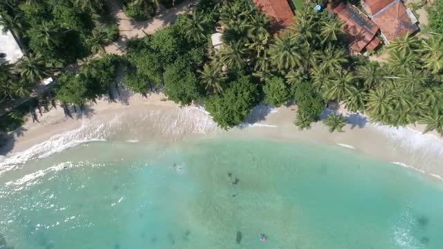 Aerial footage of the Mirissa Beach in Sri Lanka. Slowmotion footage in 4k.