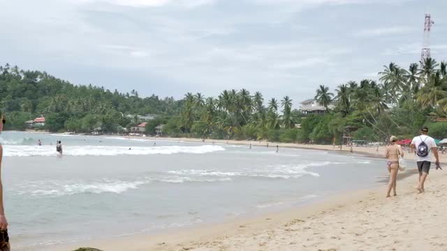 Footage of people walking on at a beautiful beach Sri Lanka. Slowmotion shot in 4k.