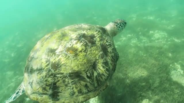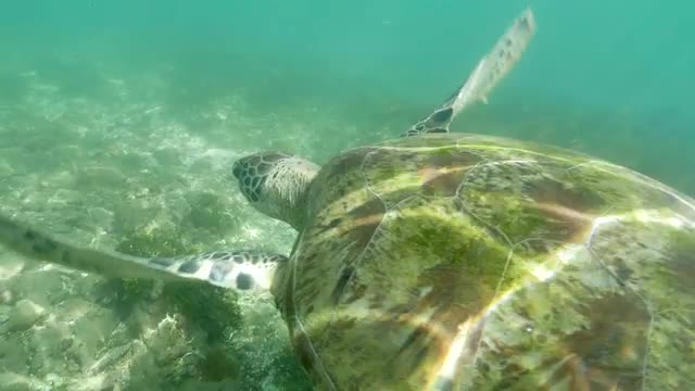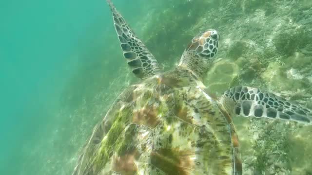 Turtle Underwater Closeup Slowmotion 4k