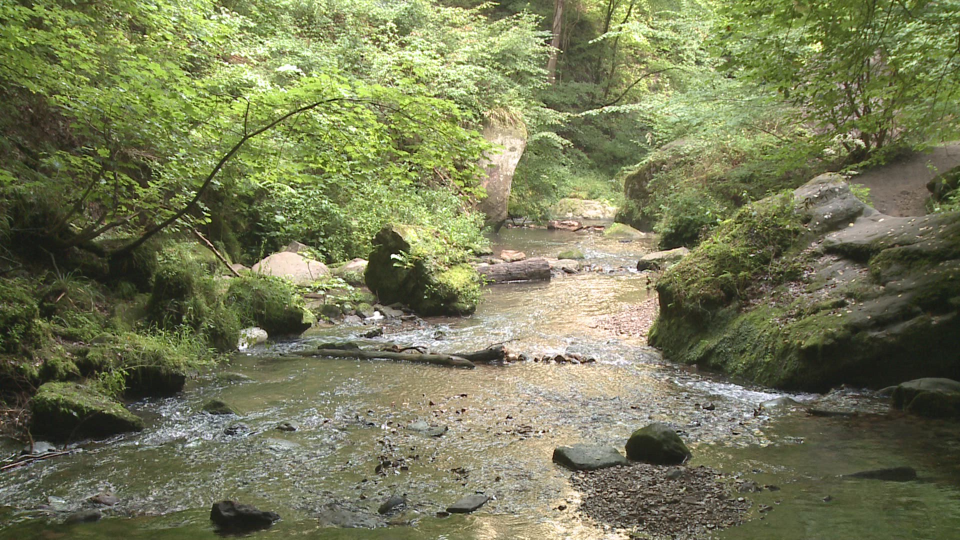 > Aerial view flying over the Colorado River through a canyon in Utah