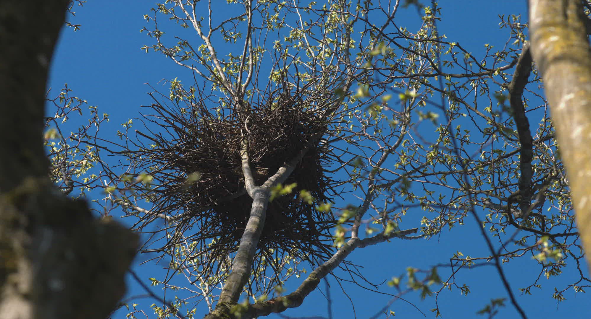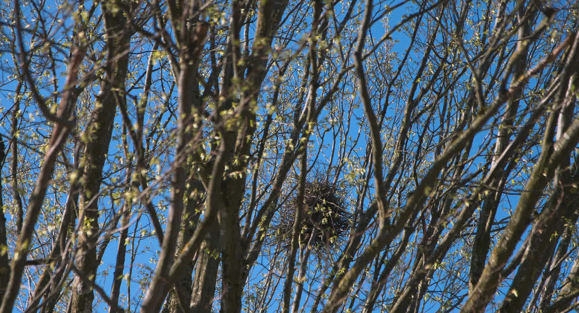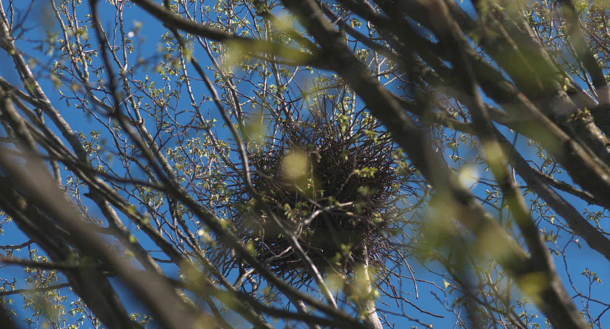 Wide shot of a magpie sitting on a rock with morning light shining on the grass.