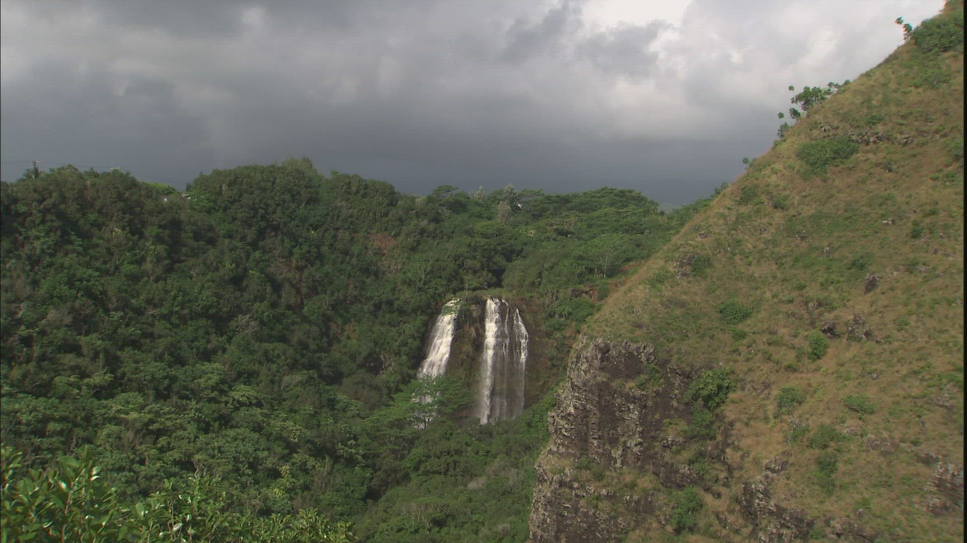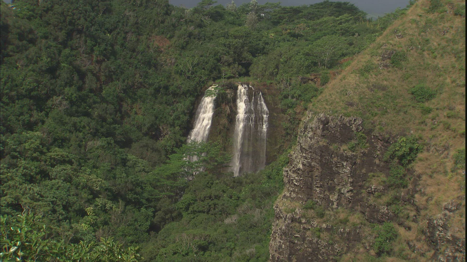 > Aerial of valley in Hawaii