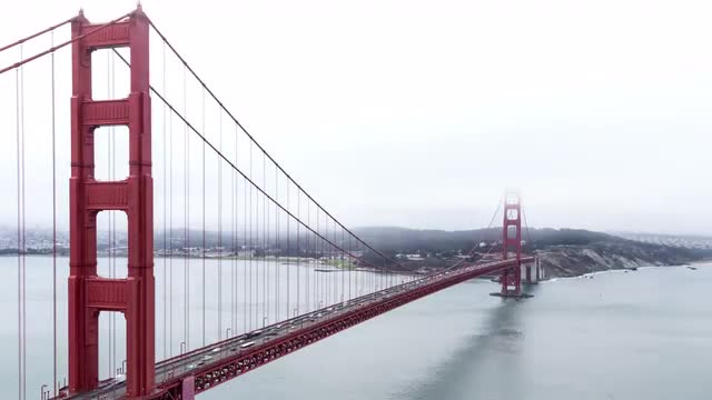 A timelapse during the day of the Golden Gate Bridge in San Francisco during foggy weather.