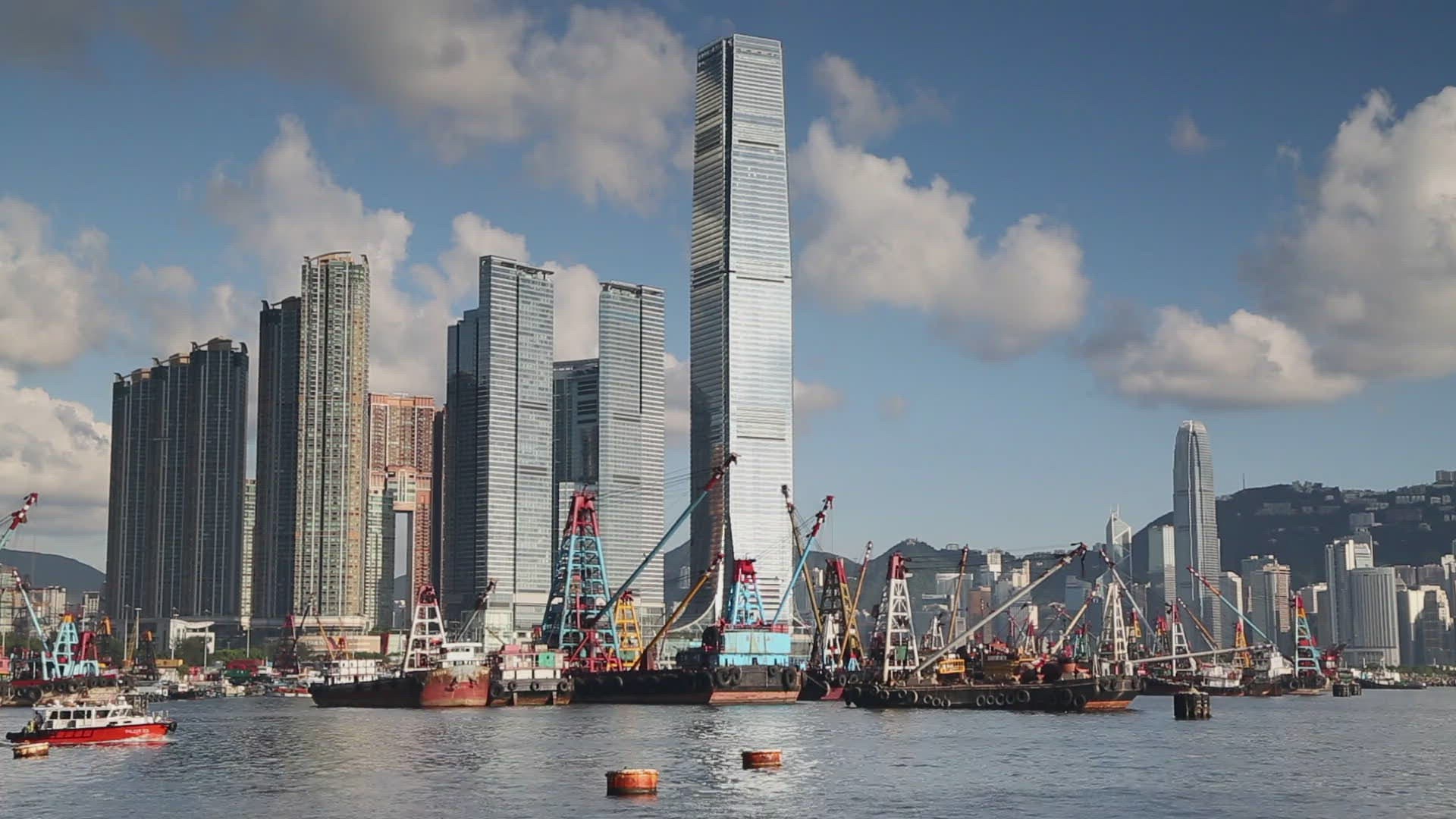 > Star Ferry passing International Commerce Centre (ICC), Kowloon, Hong Kong