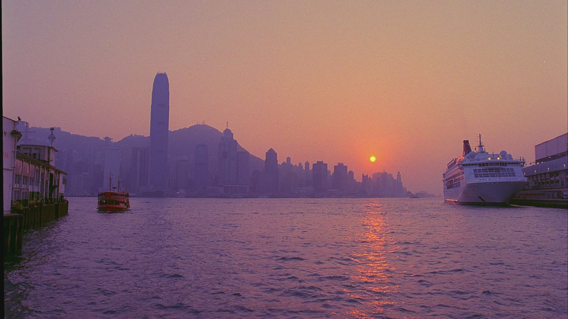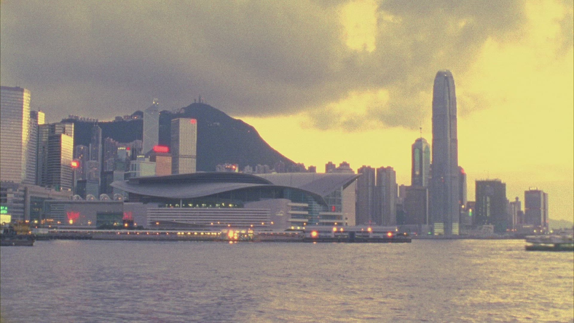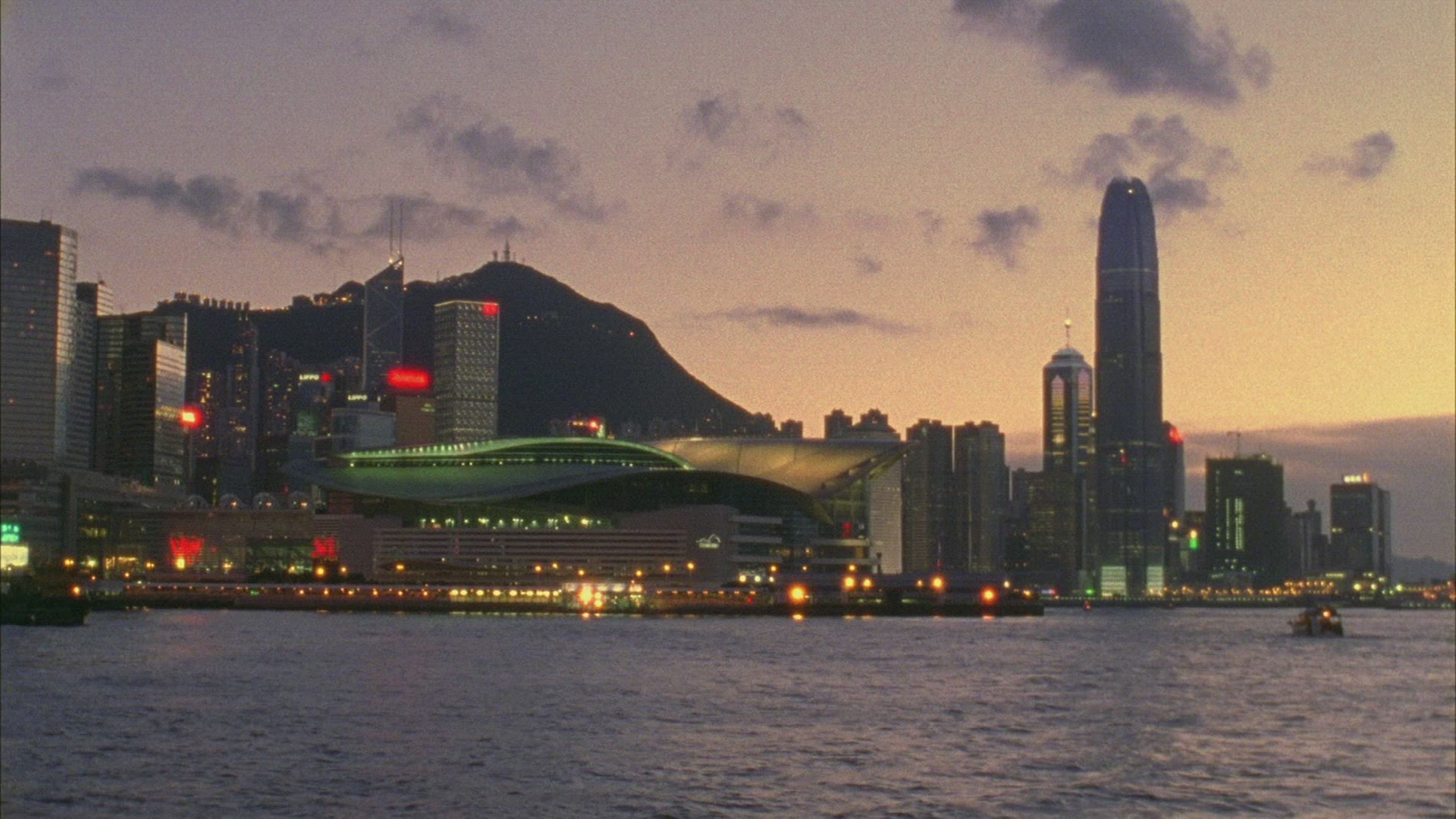 > View of Hong Kong Island skyline and International Finance Centre (IFC) at sunset, Hong Kong, China