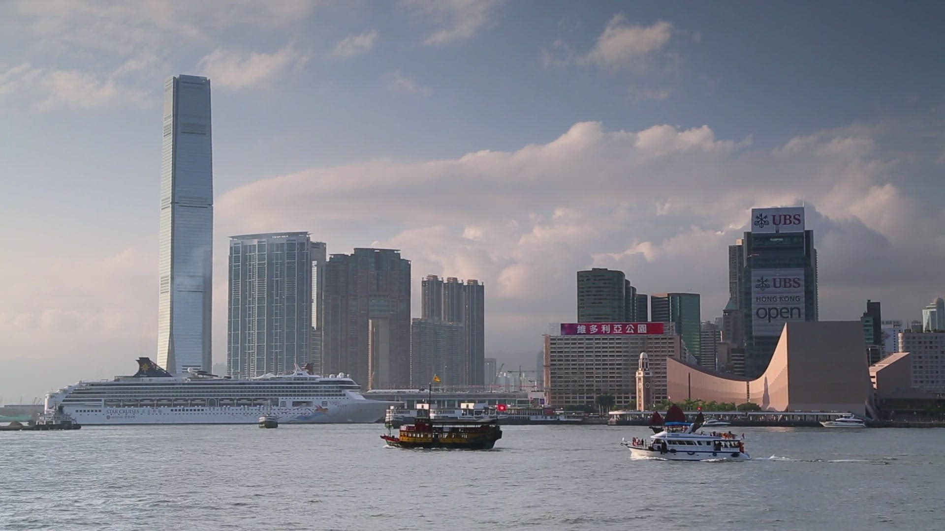 > View of Tsim Sha Tsui skyline and International Commerce Centre (ICC), Kowloon, Hong Kong, China