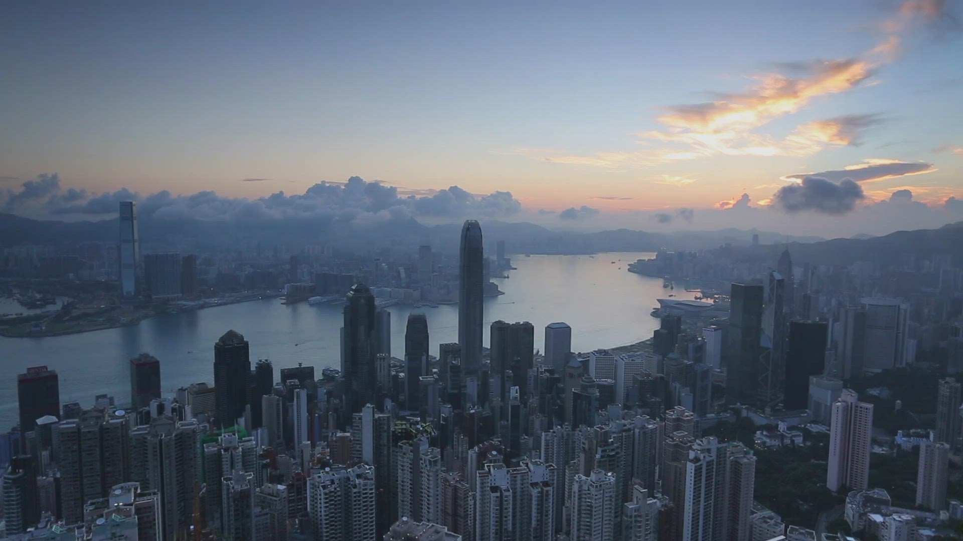 View of Hong Kong skyline at dawn, Hong Kong, China