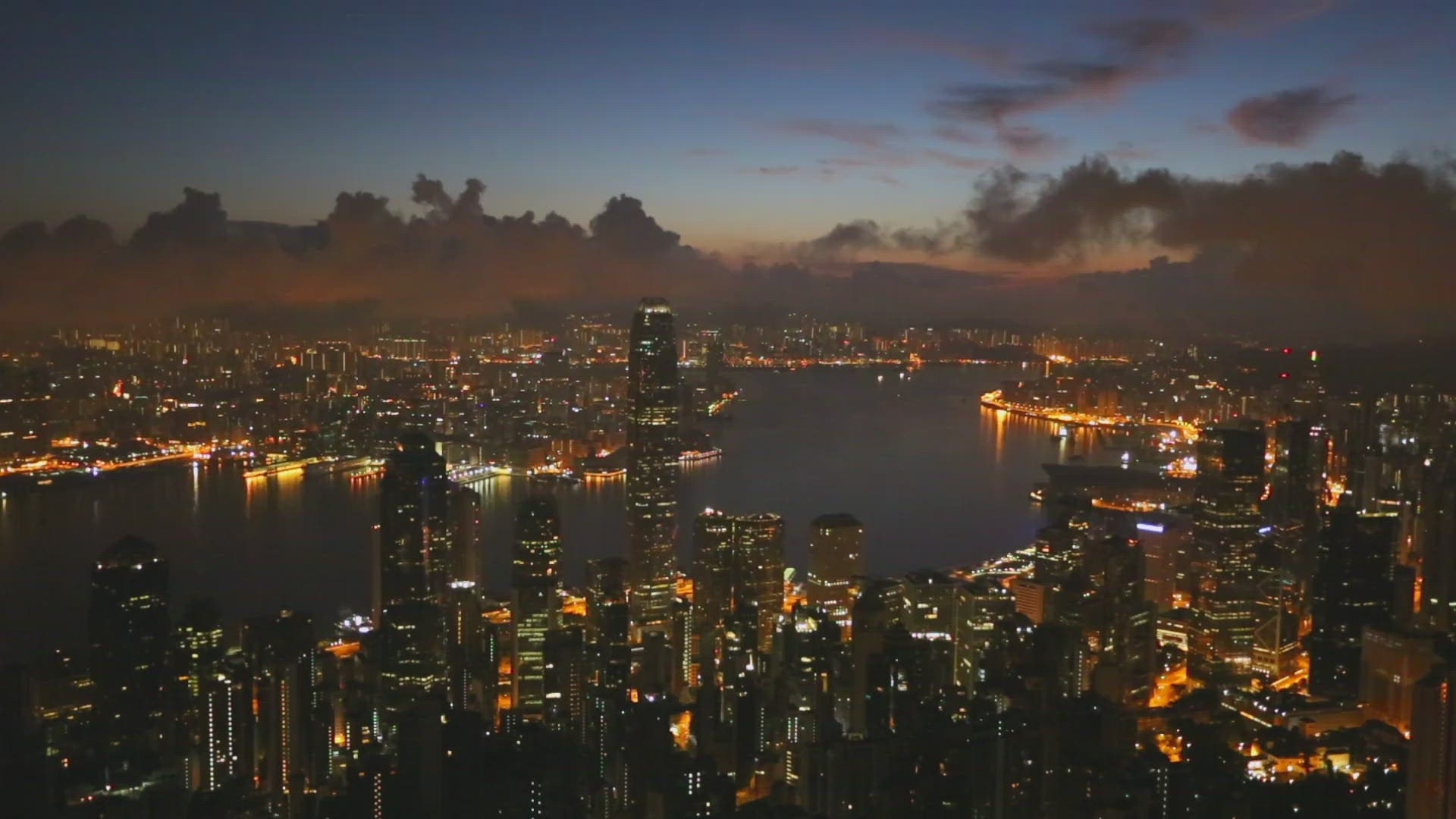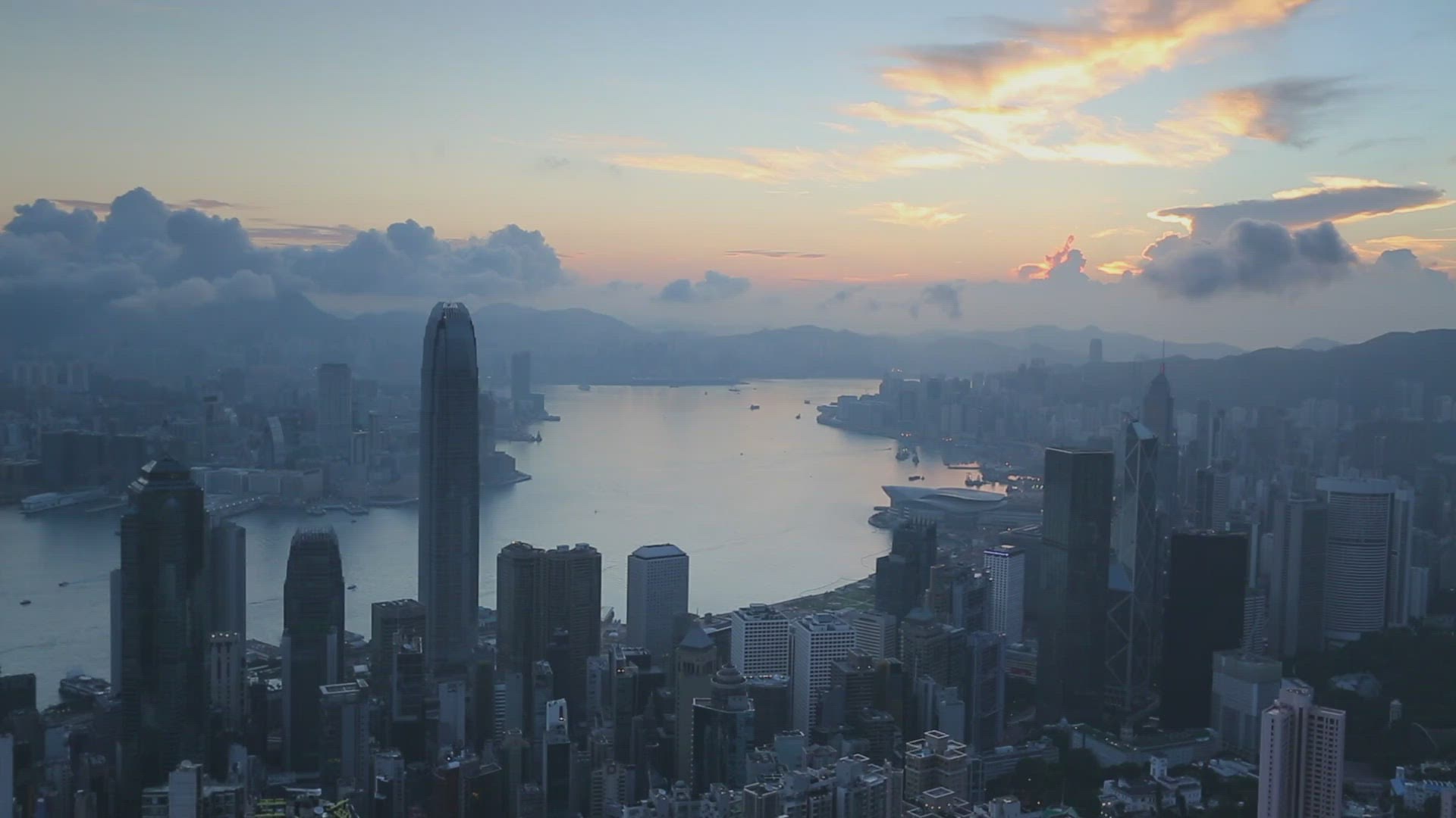 > View of Hong Kong skyline at dawn, Hong Kong, China