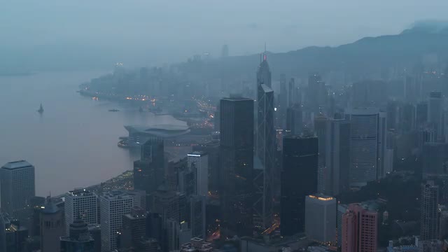 > View of Hong Kong skyline at dawn, Hong Kong, China