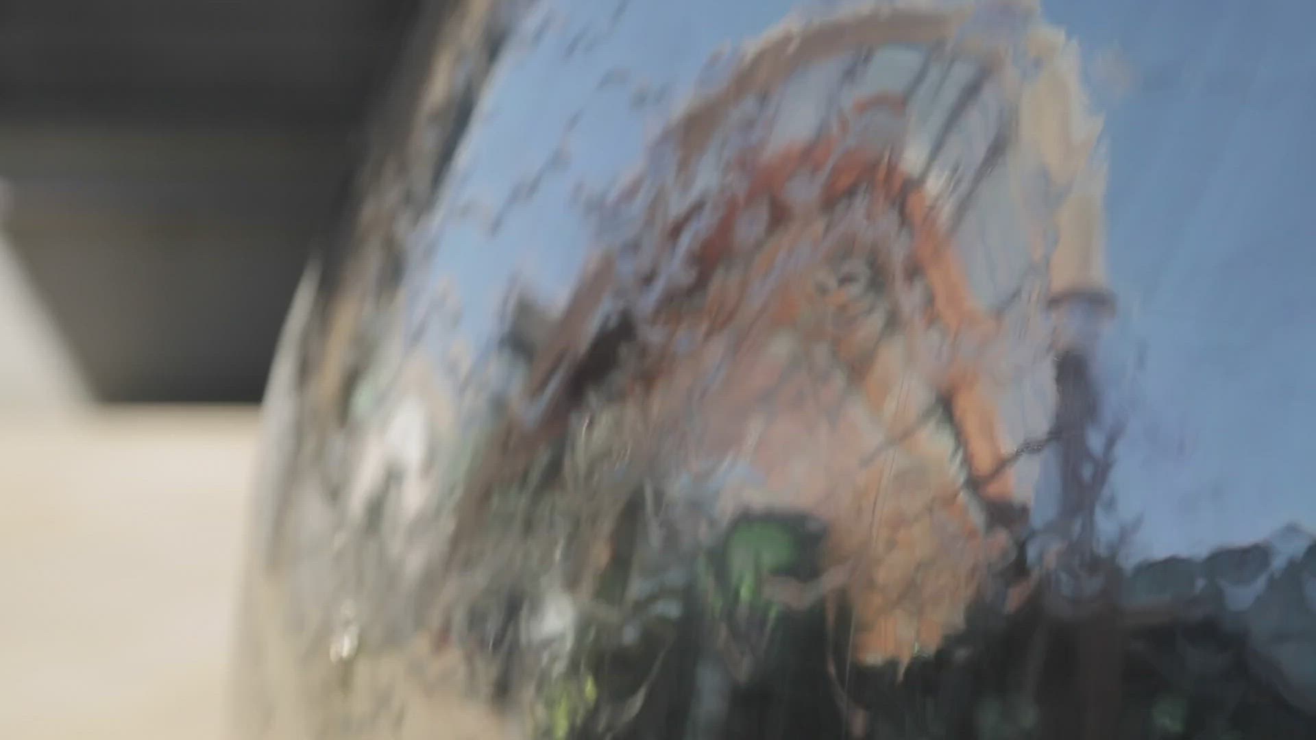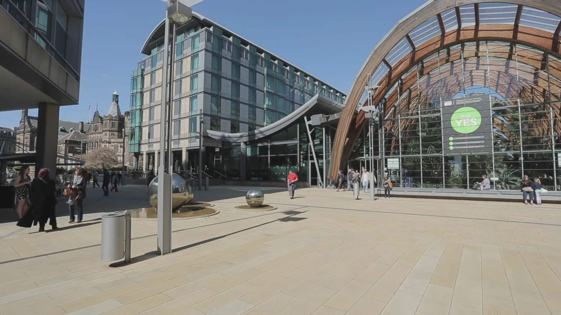 > Steel Fountain Balls in City Centre, Sheffield, South Yorkshire, England, UK, Europe