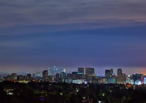 439747 - Time-Lapse of Sunset Behind Downtown Los Angeles Skyline