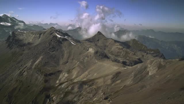 Time laps of the top of Alps with white clouds rising toward sky.