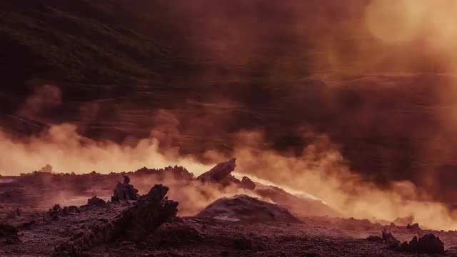 28568 - Detail of martian rocks with fumes / Iceland / 4K