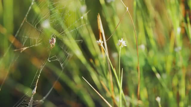 437257 - Spider in a web on green grass