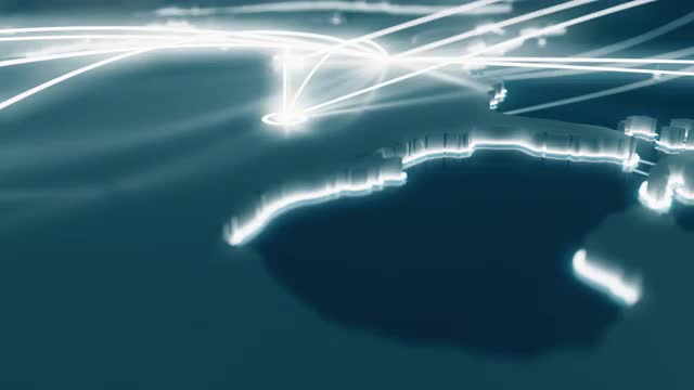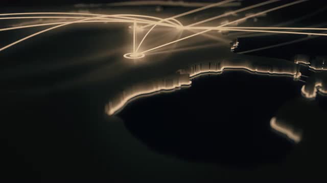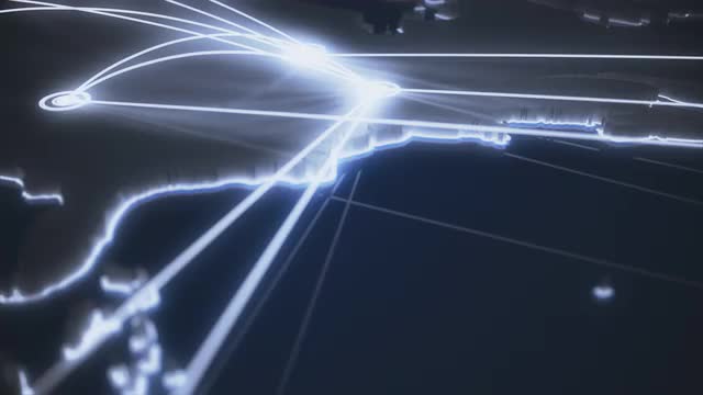 Animation depicting flight paths on the North American continent and beyond. 16-bit color depth. Static shot with copy space.