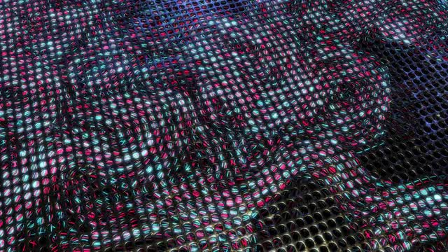 Light trails swirl underneath a metal grid. Abstract animation / motion background with copy space. 4K seamless loop.