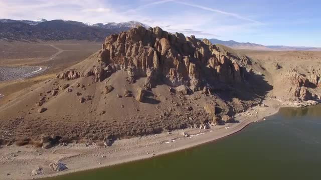 > Two base jumpers flying near mountainside. Rack focus includes third basejumper and mountain view.