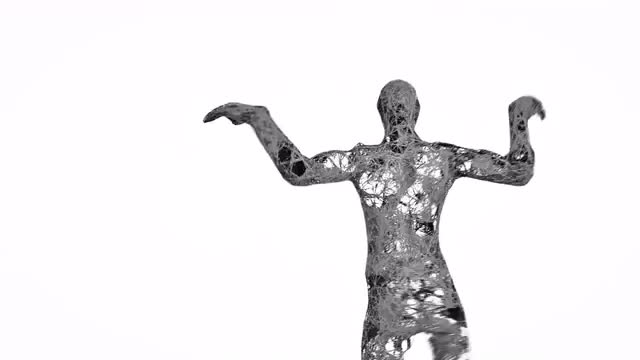 Abstract dancing human form. Trendy 4K CGI animation with copy space.