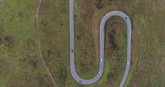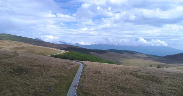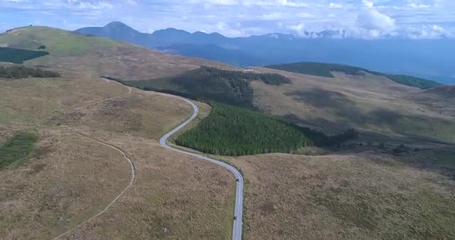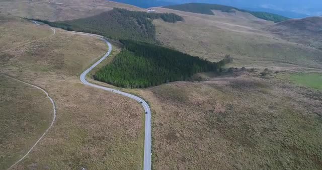 Aerial establishing shot of a rural road in North America during the winter.