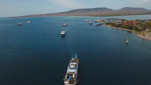 Aerial view of fishing boats in the harbor