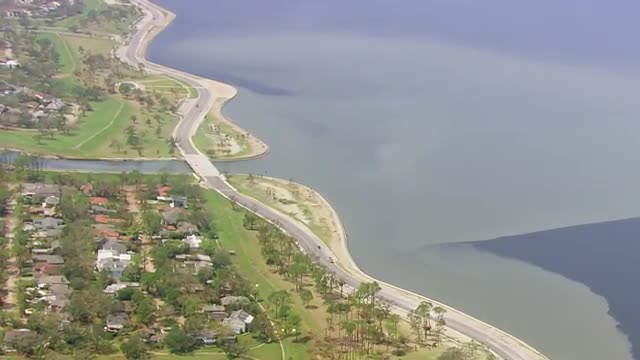753528 - WS POV AERIAL View of houses along coastline / United States